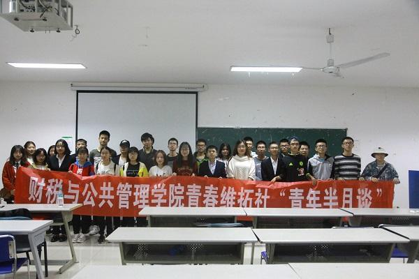 展望未来,我国青年一代必将大有可为,也必将大有作为。为鼓励当代大学生积极关注国内外时事,开拓视野,江西财经大学财税与公共管理学院于11月3日晚18点10分在麦庐大学生活动中心开展了本学年第一期青年半月谈。