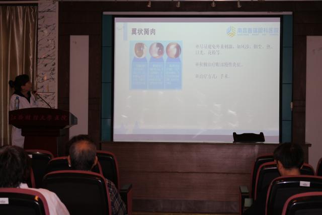 当日,普瑞眼科医院的医护人员在校医院一楼大厅开展义诊活动,现场为广大师生做了眼科方面的检查和诊断,副主任医师刘娜还在校医院四楼大会议室为校医院医护人员做了一场《关爱眼健康知识》的公益讲座。对常见眼病的症状,眼病的预防,治疗白内障如何选择人工晶体,激光近视治疗手术等方面做了专业的培训。