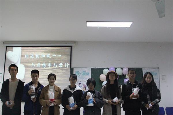 11月11日下午,由工商管理学院与物联网工程学院心理健康协会主办,法学院、旅游与城市管理学院、人文学院、外国语学院、信息管理学院、体育学院、艺术学院心理健康协会协办的“相遇相知双十一,与君携手与君行”光棍节特色活动在麦庐园大学生活动中心如期举行。