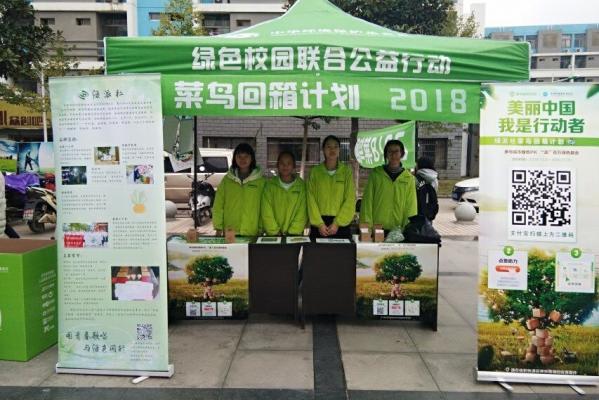 “双十一”购物狂欢节已经结束,大量快递纸盒被随意丢弃,造成了极大的资源浪费。为引导在校学生养成废品回收利用的习惯,激发大学生参与环保的热情,11月14日至16日,绿派社于麦庐园南区一食堂前的广场发起“2018菜鸟双十一回箱计划”。