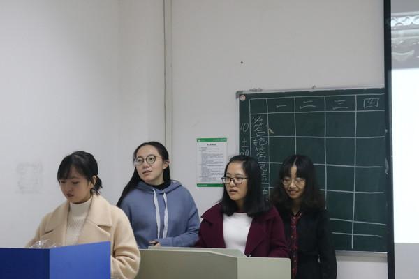 答题环节,参赛选手以小组为单位完成必答题、抢答题、风险题三项,不仅考察了选手们对某些少数民族有关常识、习俗的了解程度,也检验了选手们的反应能力与风险把控能力。抢答阶段,选手们争相作答,难分伯仲。在比赛途中,穿插着由文化部委员们编排的两个民族典故情景剧,简短精炼却生动形象地将故事呈现在大家面前,具有极强的民族特色,展现了少数民族文化的风采。“心有灵犀”与“你画我猜”环节,分别以少数民族日常用语、衣食住行为侧重点,要求同组两名队员配合完成,以此反映参赛选手们的表达能力、临场学习能力与合作意识,也让所有在场人员切身体会到了少数民族风俗的魅力。竞赛结束后,主办方为每位参赛选手颁发了具有民族特色的纪念品并与之合影留念。