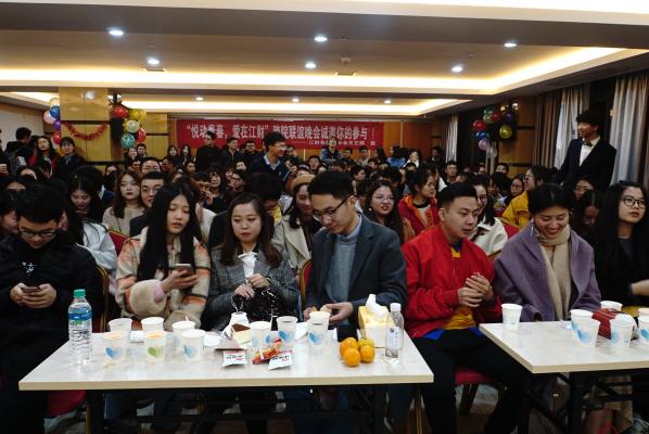 良辰美景共此时,赏心乐事合弦歌。11月17日晚,由会计学院主办,金融学院、统计学院、财税与公共管理学院、国际经贸学院、马克思主义学院、经济学院、艺术学院、人文学院、工商管理学院、法学院承办的“悦动青春,爱在江财”跨院联谊晚会在我校西门旁尚客优精选酒店10楼会议厅顺利举办。来自我校十一个学院的研究生们欢聚一堂,共赏节目,在欢声笑语中度过一段愉快的时光。