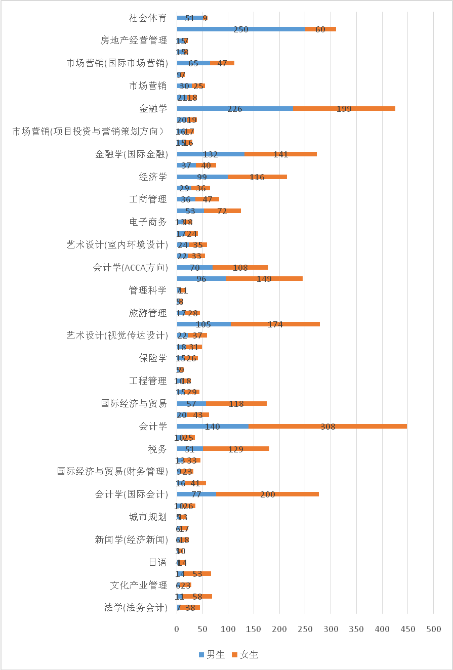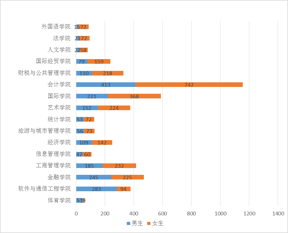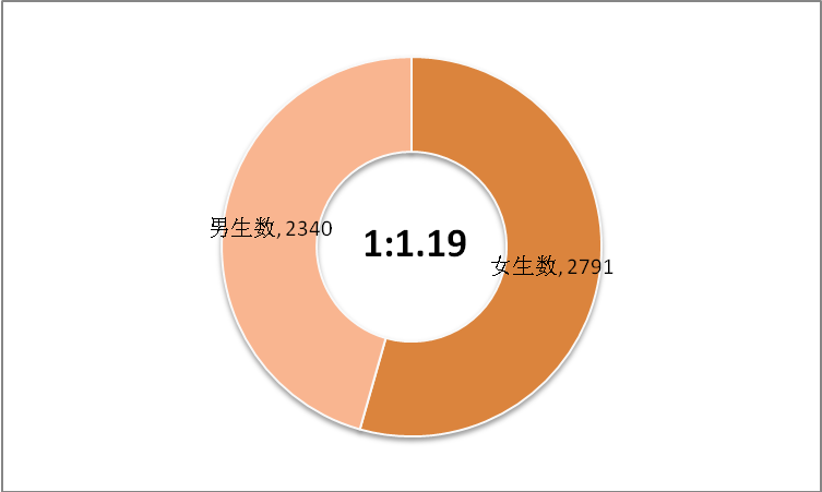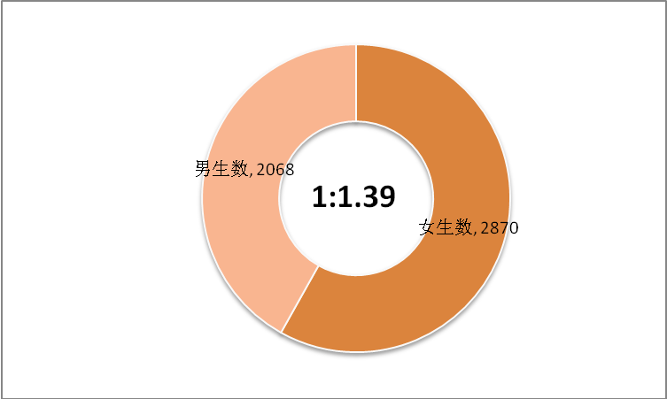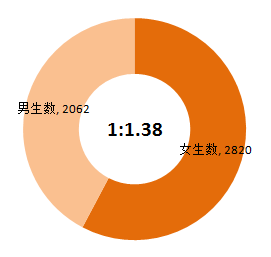 2016届普通本科毕业生共4882名,其中男生2062名,女生2820名,男女比率约为1:1.38,女生比率比2015届略有降低。