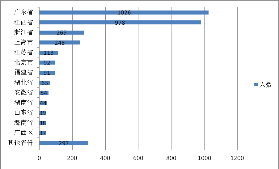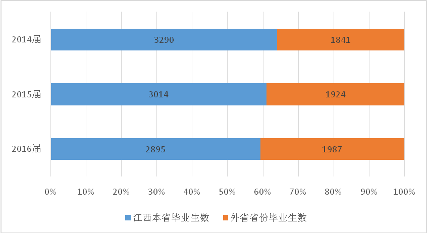 毕业生中江西本省生源2895名,外省生源1987名,外省生源比率较2015届略有上升。