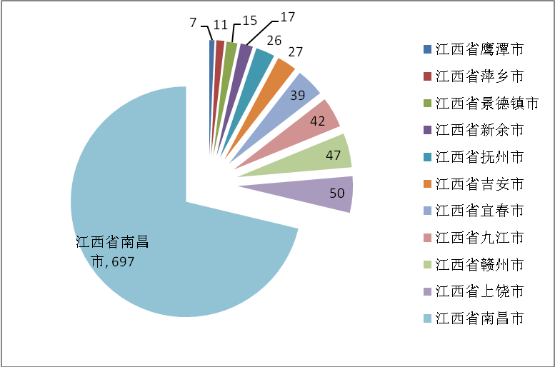 江西省内单位就业的978名毕业生中,71.27%(2015届为70%)集中于南昌市,其他去向较为集中的区域为上饶、赣州、九江、宜春、吉安和抚州,其余分布在其他地市。