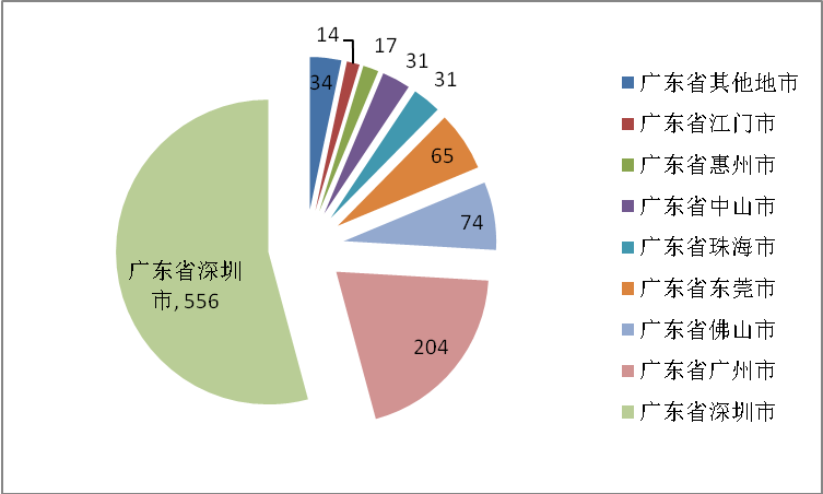 广东省内单位就业1026名毕业生中,54%(2015届为60%)集中于深圳市,19.88%(2015届为18%)去往广州市,其他去向较为集中的依次为佛山市、东莞市、珠海市、中山市、惠州市和江门市,其余的3%毕业生分布在广东省其他地市。