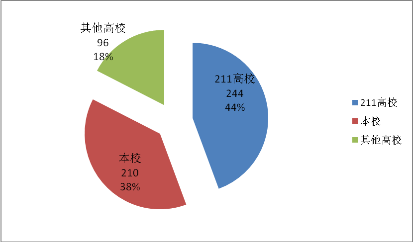 550名去向为国(境)内升学的毕业生中,244人升入211院校深造,比率为44.36%(2015届为44.37%),其中88人考入985高校(占国内升学总人数比为16%);210人升入本校研究生院,比率为38.18%(2015届为38.74%);96人升入非211、非985的其他院校继续深造,比率为17.45%(2015届为15.98%)。