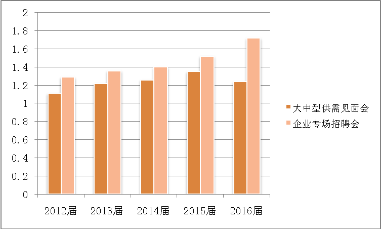 其中政府人才中心、行业协会、人才机构牵头企业组团以及学校和部分学院举办的大中型供需见面会数量为16场,与2015届大致相当。
