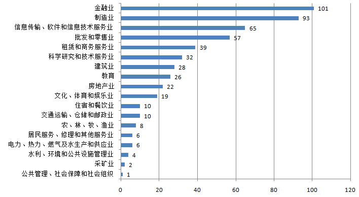 529场校园专场招聘会中,企业行业分布数排前五的为金融业、制造业、信息传输、软件和信息技术服务业、批发和零售业、租赁和商务服务业。