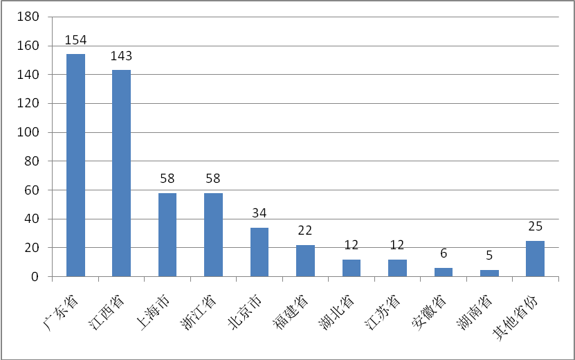 529场校园专场招聘会中,企业所在区域列前五的为广东、江西、上海、浙江、和北京。周边省市如福建和湖北、江苏来校招聘企业较上年略有增加。