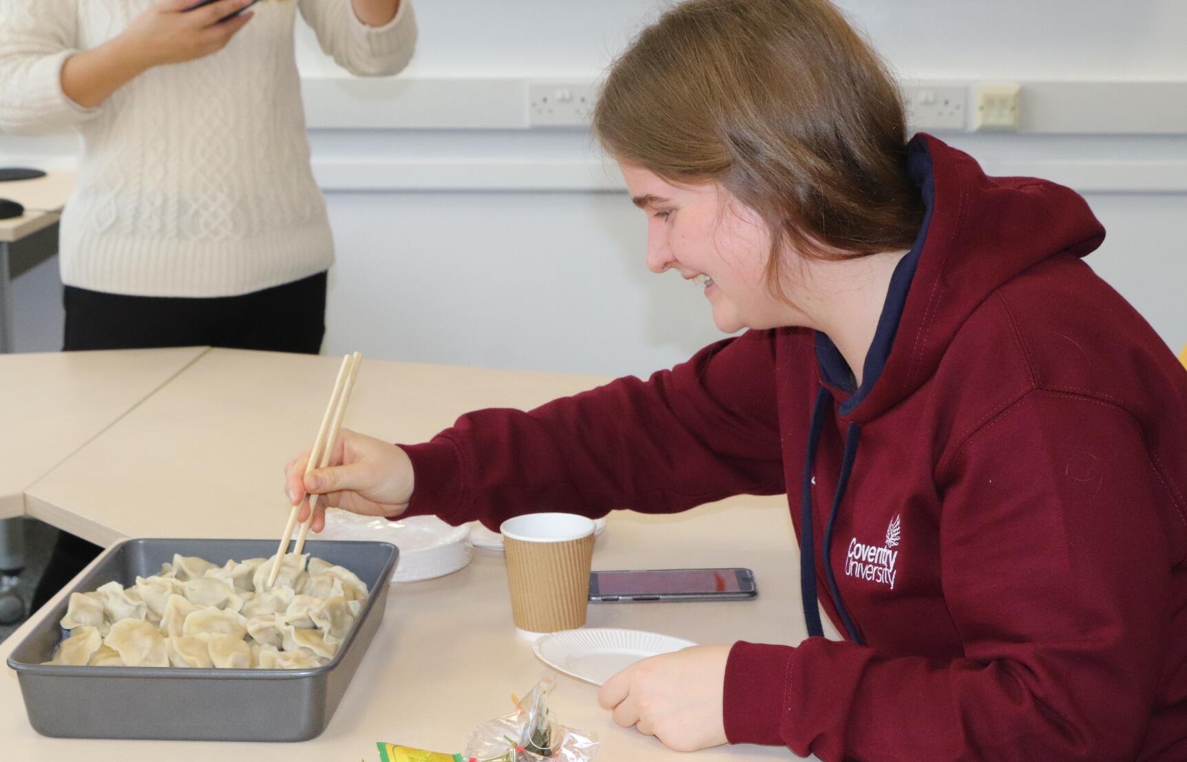 聚会开始前,刘有发院长发言,欢迎到场的各位外国友人,并对中国春节传统习俗做了简短的介绍。之后,老师们端上了热腾腾的饺子,学生们拿起了筷子,吃得津津有味。