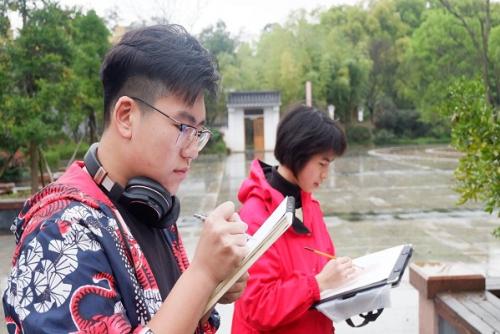 活动伊始,天降微雨,但书画小组成员外出写生的热情却未被浇灭。成员们来到江西省林业科学研究院后,以笔为媒,以纸为介,融情于画,将四月天的温柔明媚加以自身感受,绘于笔下。素质拓展活动形式以写生为主,以树叶彩绘、制作剪贴画等趣味活动为辅,在过程中,成员之间相互交流绘画技法,分享调色心得,没有绘画基础的成员也在自由创作中收获了自己意想不到的成果,触摸到了别开生面的美。