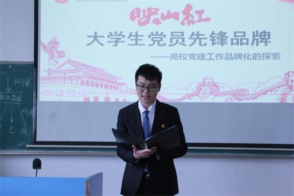 会议伊始,通过一个简短的视频,吴俊向大家生动地展示了江财党建工作的创新项目——“映山红”大学生党员先锋品牌。为了让大家深入了解该品牌,他从实施计划、建设成效和工作启示三方面进行了详细的阐释。在介绍实施做法时,他简要描述了“根植”“报春”“播撒”和“映染”四项培育措施,并列举党员选拔、课程实践学习等具体落实措施,强化了学员们的认识。对于建设成效,在他的带领下,大家认识了近年来江财校园内涌现的众多党员先锋,了解到各学院党建创新被多家媒体专题报道,加强了对党建工作“以优带优,以点带面”“从学生中来,到学生中去”的理解。吴俊指出,新时代新召唤,要坚持以立德树人培育党员先锋,借鉴多样形式丰富党建工作,让大学生党员带着党的精神开遍“映山红”。