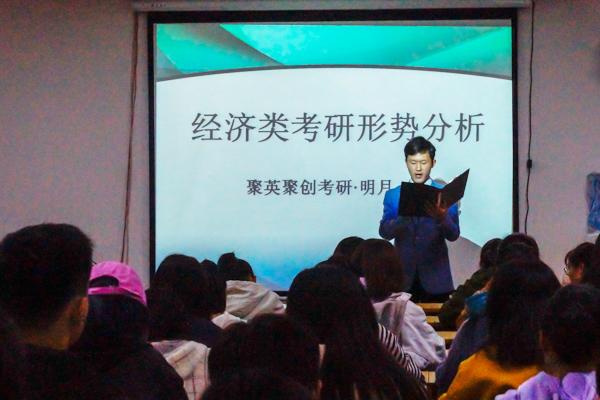 4月13日晚,经济学院学习部和公关部于蛟桥财大购物中心五楼考研报告厅举办考研分享会。本次分享会邀请了来自聚英聚创的明月老师向同学们分析经济学类考研形势,同学们踊跃参加。