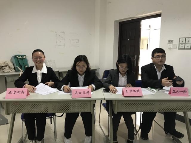 本次辩论赛共分为开篇立论和质询、申论和质询、质询小结、自由辩论、总结陈词五个环节。首先,旅城学院君和队陈述观点:“提高最低工资标准有利于保护劳动者权益”并就此展开论述,反方代表队则提出相反观点,进行阐述。在随后的攻辩环节中,双方更是争锋相对、步步紧逼、侃侃而谈,现场气氛迅速升温,达到白热化阶段。尤其在最精彩的自由辩论环节,选手时而妙语连珠,诙谐幽默,令人捧腹;时而慷慨激昂,掷地有声,令人愤懑。辩论环节在双方的总结陈词后落下帷幕。