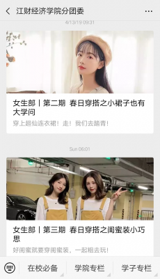 4月12日起,经济学院女生部开展了有关春日穿搭分享的系列线上活动,并连续三天分别推出内容新颖的穿搭教学。