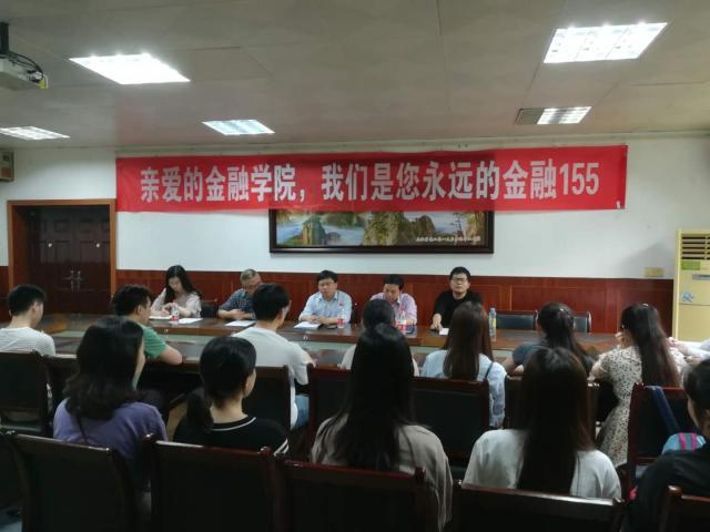 听了班级工作汇报后,学院领导、老师根据自己的工作角色及人生经历,为同学们送上金玉良言。汪洋院长从学习对于人一生的重要性谈起,希望同学们认真学习习近平总书记的重要讲话,不忘初心,继续前进。走向社会后,不断地加强学习,勤勤恳恳做事,踏踏实实做人,培养“责任意识和担当意识”,积极思考,讲究诚信,守住道德底线。在勤奋工作的同时,还要加强体育锻炼,为祖国健康工作五十年。郭海峰副书记以乐观人生为题,希望同学们奋发进取,敢于直面困难,积极应对人生挫折和困境,增强心理弹性,努力实现优雅人生的目标。他希望同学们发扬五四爱国精神,把个人奋斗融汇在实现中华民族伟大复兴中国梦的共同奋斗之中。王辉老师则强调职场及生活中“情商”的重要性,鼓励同学理论联系实际,多与人交往,多与人沟通,拓宽自己的人脉,在做中学,在学中做,努力成为具有“信敏廉毅”素质的创新创业型人才。本科毕业于我校金融学专业的胡军博士则以学长的身份,和大家分享了他读硕士及博士研究生期间的经历,鼓励同学们继续深造,并要求考取研究生的同学充分利用入学前的一段时间,为将来的科研之路做好准备。汪洋院长最后指出:“胡军老师是你们学习的榜样,希望有更多像胡军博士这样的同学,在外刻苦深造,学成之后不忘反哺回馈母校!”