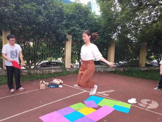 本次素质拓展活动通过官兵捉贼、撕手环、传声筒等游戏将体力与脑力拼接在一起,同时考验着同学们团队协作的默契水平。活动开始前,在主持人的统筹领导下,所有成员随机组成三个队伍。官兵捉贼活动中,同学们均表现出敏捷的反应力,每个队伍的表现都毫不逊色。紧接着的撕手环活动中同学们更加活力满满,在互相追赶和“撕扯”中,全员热血沸腾,最终第三组的四位“女汉子”满盘夺冠。而被淘汰的队伍则全员接受在指压板上跳绳的惩罚,队员们各自展现自身强硬的身体素质,虽然是惩罚过程但却乐在其中。大家在欢声笑语中迎来了最后一个不仅考验脑力更考验团队协作能力的游戏——传声筒,在两轮紧张刺激的比拼中,最终第一组以惊人的速度和默契全力获胜。