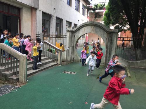 ​  5月22日上午,我校幼儿园对全园师生进行了安全疏通消防演习活动。目的是为了让孩子从小学会自我保护,遇到火警懂得快捷、有效的逃生的办法。