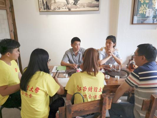 在见面后,双方先进行了自我介绍。万企调查队伍指导老师王鑫、负责人余佳向李渡酒业营销副总何金兵能够接受本次访谈表示了感谢。同时,何总也对调查队伍的到来表示了热烈的欢迎,并表示李渡酒业与江西财经大学有过很多的交流。随后,访谈正式开始。