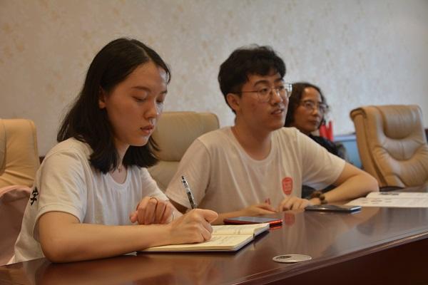在参观完垦荒纪念馆之后,调研团与共青农场高层进行会面,会上,双方就农场的经营模式和经营范围进行了讨论,并总结出了一些农场近些年在转型升级,产业结构调整过程中关于绿色金融发挥作用的成功经验。在本次简短而精炼的对话当中,调研团对北大荒整体的农场经济背景有了深入的了解,也得到了了共青农场绿色金融发展状况标准的一线数据,为后续总结报告的撰写提供了大量可靠数字和现实依据。
