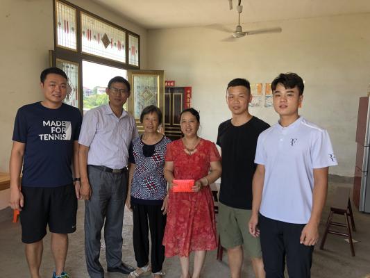8月28日,体育学院党组织副书记车友财、分团委书记马明、172班班主任夏长建一行三人顶着炎炎夏日,来到位于上饶市玉山县下镇镇下仓村2017级陈灵敏同学家中走访,代表学校为家庭贫困、品学兼优的同学送上慰问金和学院的殷切关怀。