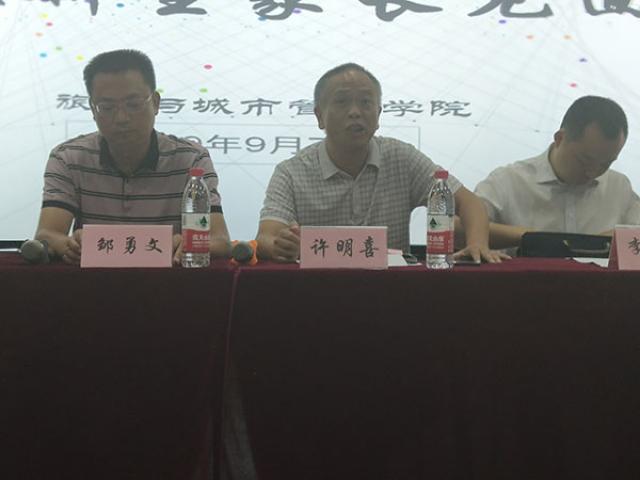 9月7号下午,旅游与城市管理学院于麦庐园大学生活动中心108室召开了2019级新生家长见面会。学院领导班子、学工办主任和新生班主任出席了会议。广大新生家长更是积极主动、自愿准时的来到了会议现场。