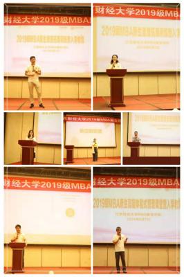 全体学员及老师拍照留影后,8:45开始隆重的入学教育仪式。首先由主持人尹朝华老师发言致辞并隆重介绍到场院领导及老师们:工商管理学院宁院长、工商学院研管办副主任张鹏老师、MBA教务办尹朝华老师以及MBA学生事务部王康老师。随后,2019级MBA教育各班班主任以及五个方向的教师代表(钟尉、郭英、钟岭、涂淑丽、李敏)分别以幽默诙谐的方式向新生们介绍五个方向课程的内涵与外延,以便新生们后期选择导师时做参考。另外,MBA联合会李刚主席也向新生们介绍了联合会的内容,热情邀请大家成为其中的一员,最后由宁院长宣布2019级MBA新生素质拓展训练正式开始。