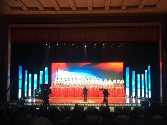 9月22日,江西省委教育工委、江西省教育厅为庆祝新中国成立70周年深入贯彻落实习近平新时代中国特色社会主义思想和党的十九大精神,举办了“我和我的祖国”全省高校庆祝新中国成立70周年大合唱比赛。我校在比赛中荣获二等奖,艺术学院韩玉澎副教授获得此次比赛最佳指挥奖。