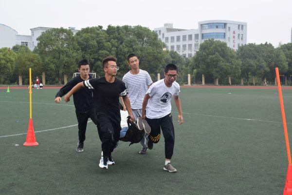 每班的参赛选手们提前在田径场上集合,秋风瑟瑟、微雨点点也不影响他们心中的热情。在选拔开始前,选手们认真地进行热身和训练,以尽快进入状态。十二点半选拔准时开始,首先进行的是负重搬运接力选拔。比赛中,裁判一声令下,工商191四个男生默契地迅速开跑,全力以赴向终点冲刺,选手们配合默契,争分夺秒,斗志昂扬,赛况十分激烈。在场的同学为选手们加油助威,响亮的呐喊声彰显了班级强大的凝聚力和向心力。
