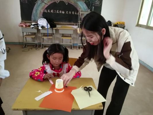 在孩子们初步建立垃圾分类的知识体系后,志愿者们发放彩纸与纸杯,引导孩子们自主制作工艺品,培养他们垃圾回收利用的意识,让他们切实感受到垃圾是放错了地方的资源。更有志愿者们带领孩子们进行诗歌朗诵,在趣味中学习垃圾分类知识,了解保护地球家园、爱护地球母亲的重要性。