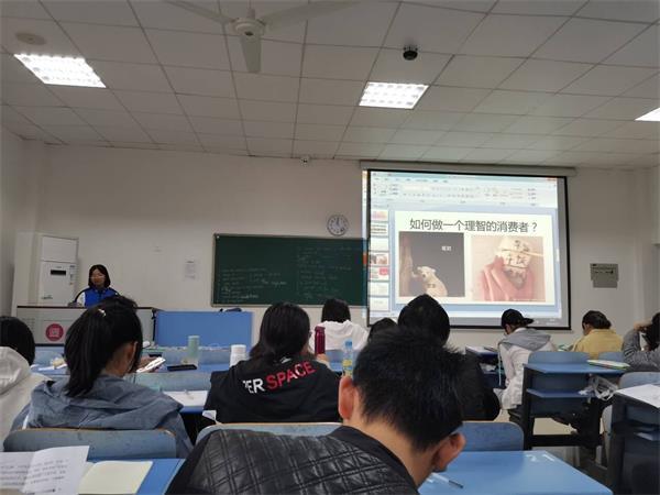 互动环节结束后,钟伟婷带领同学进入团课的核心命题即如何做一个理性的消费者。她提出了在“玩法”多样的“双十一”及其他购物狂欢节,同学们应该在各个商家明降实升的“假优惠”中擦亮眼睛,理性购物。钟伟婷主要从“量入为出,适度消费”、“避免盲从,理性消费”“保护环境,绿色消费”、“勤俭节约,艰苦奋斗”四个方面来具体阐释了什么是正确的消费观。她指出,作为青年一代,必须养成正确的消费习惯,培养正常的消费方式,以适应当今社会的经济活动需要。