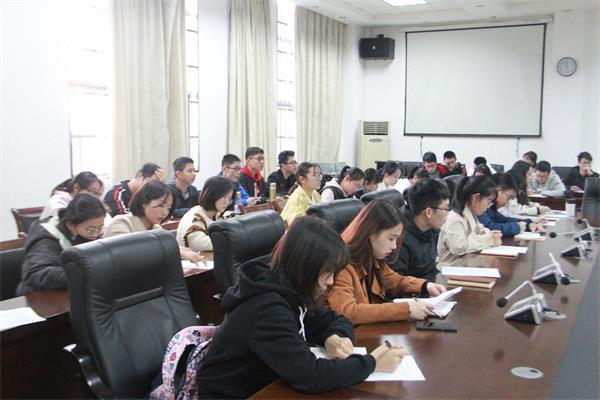 11月21日下午,法学院召开院领导恳谈会。党委书记贺三宝,副院长周维德,分团委书记李临彧,本科生辅导员阙刘汇敏出席本次活动,与17、18、19级学生代表齐聚一堂,分团委书记李临彧担任主持。