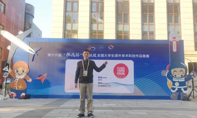 谈及挑战杯特等奖带来的影响,谢亮回答“我希望这次得特奖,能给团队里的学生带来更多的自信,给在积极备赛的其他同学起到榜样、激励的作用,同时也衷心希望全校师生能受此鼓舞,积极努力参与各类学科竞赛,促进自身能力的提高。”谢亮老师以开阔的视角表达他对于全校师生的殷切期望,他相信此次的特等奖能给学校一个更高的起点,助力江财在各类竞赛中有进步,更有突破,并希望能藉此为学生的发展提供更广阔的平台。最后谢亮老师借用电影《哪吒之魔童降世》中的一句话:我命由我不由天。深切期望学生们在求学的过程中能够严于律己,不为生活中一时失利而妄自菲薄,也不因前进路上遇到困境而轻言放弃,要有克服困难的决心,迈过坎坷,成就自我。