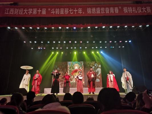 盛世光影,锦绣繁华,万众瞩目的江西财经大学第十届模特礼仪大赛于11月29日晚在蛟桥大礼堂盛大开幕。本活动由校学生会女生部与校礼仪队联合承办,旨在提高学生综合素质、营造校园礼仪氛围,塑造我校高意蕴、高审美的学校形象。软件与物联网工程学院以汉服元素为主的团队秀在本次决赛中获得了第二名的好成绩。