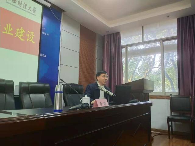 12月6日上午,教育部电子商务类专业教学委员会副主任、西安交通大学经济与金融学院李琪教授在翼轸楼三楼学术报告厅给我校国际经贸学院师生带来了题为《五力协同电商创新发展电子商务一流专业建设》的学术讲座。讲座由我校国际经贸学院院长吴朝阳教授主持。国际经贸学院老师、研究生及本科生都积极参加了本次讲座,氛围十分活跃。