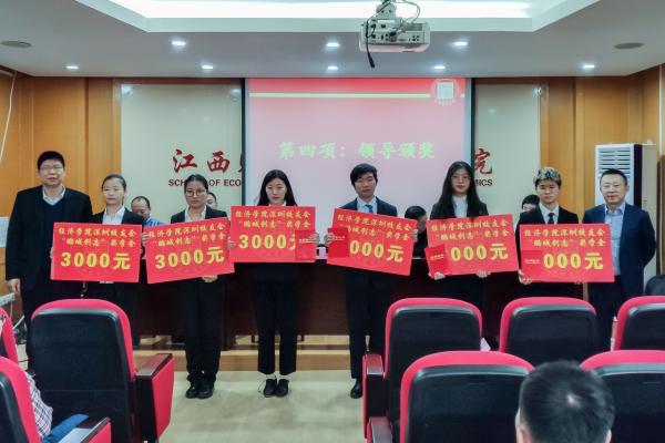 张利国院长宣读表彰决定,并与李黔会长一同为获奖同学颁奖。经济171班黄锡琦同学作为获奖代表发发表感言,她从学习、学生活动和社会实践三方面回顾了过去两年的时光,并表示将牢记在这段时间的收获与成长,努力成为担当大任的时代新人