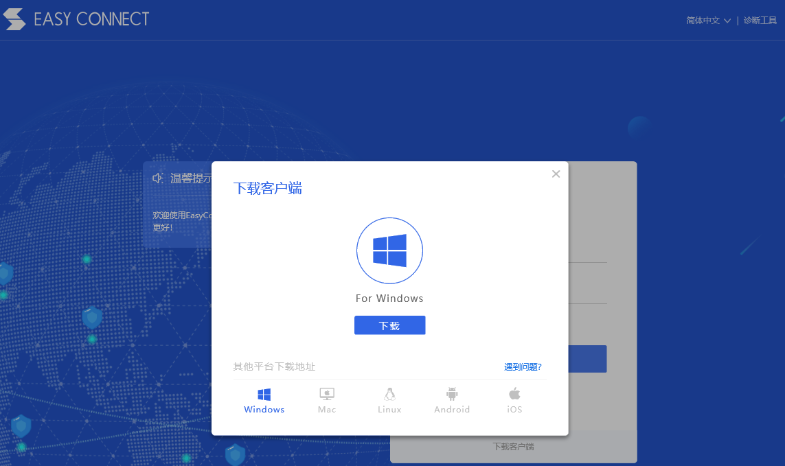 2、点击“下载EasyConnect”下载后,双击并完成安装。