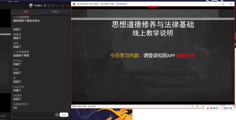 图三:思政部线上课堂《思想道德修养与法律基础》