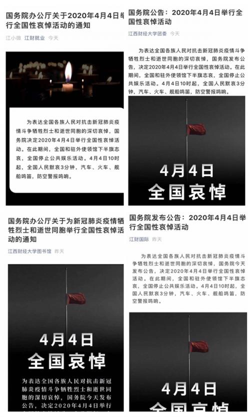 与此同时,学校各级网站、新媒体都在首页首屏使用黑白页面,向在此次抗击新冠肺炎疫情牺牲的烈士和逝世的同胞们表示深切哀悼。