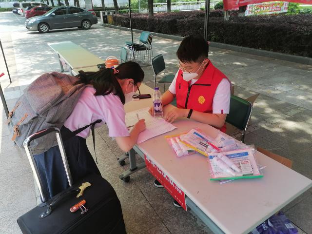 “身着志愿者小马甲的我感到非常荣幸!”2016级会计学院会计专业的周松连感慨道,“同学们是陆续返校的,下午和晚上到校的人比较多,上午人比较少,等待的过程有些枯燥但又充满意义,每当看到返校同学拿到健康包后流露出来的喜悦和开心,之前所有的疲惫都一扫而空!”