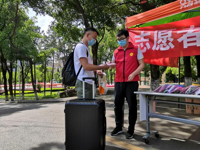 “同学上午好,欢迎返校!”迎着爽朗的清风,5月11日回校的经济学院2016级应届毕业生王丹已经站在了入校检测点,迎接12日返校的同学。5月11日是我校返校复学的第一天,学校迎来了第一批返校学生。返校的学子们积极响应学校号召,争做返校疫情防控志愿者,在校门与宿舍之间来回奔走,让沉寂许久的校园热闹起来,身着红色马甲的他们成为了学校一道亮丽的风景线。