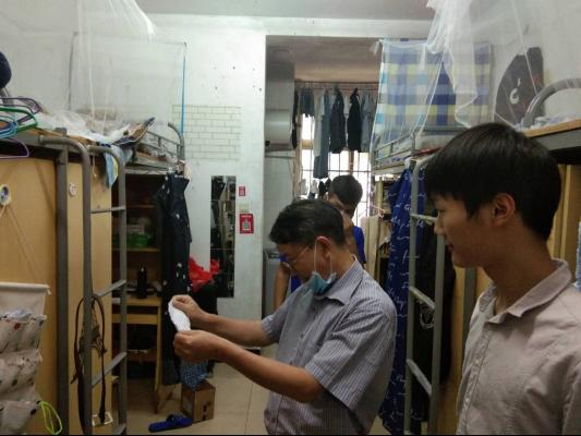 5月22日下午,财税与公共管理学院党委副书记魏清华到学生宿舍进行走访和检查,看望返校学生,了解和掌握学院已返校本科生、研究生有关住宿、学习和生活等方面的情况。