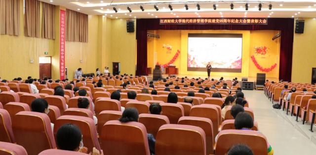 为庆祝中国共产党成立99周年,表彰优秀党员,6月29日下午,现代经济管理学院在明德大学生活动中心101报告厅举行庆祝建党99周年暨表彰大会。学院领导班子成员、各职能部门负责人、全体教工党员、学生党员代表共200余人参加大会。